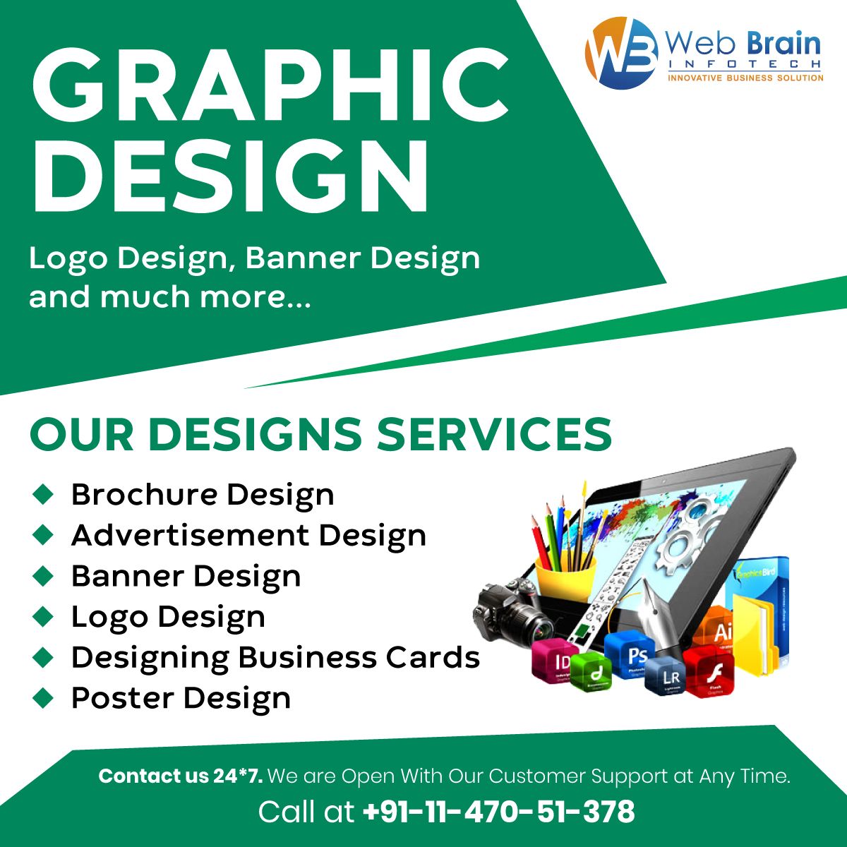 We specilaze in Graphics Design, Web Design, Website Development, Coding and Programming, Web hosting, Logo creation, Photo Frame, and many more.